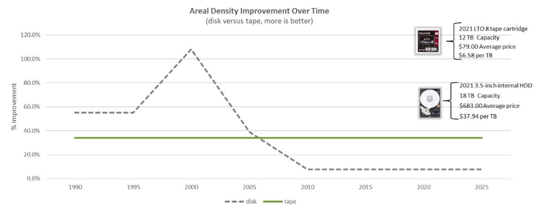 Although tape is a very mature technology, it has continued to improve and remains a cost-effective way of retaining large amounts of data at less than a penny per gigabyte. It also helps that tape has proven to be readable for many decades and offers the advantage of implementing a physical barrier thanks to the ease of removability and portability not easily achieved by other storage solutions. Furthermore, stealing data stored on tapes would mean actually stealing the physical tapes and having access to the right equipment to read them.