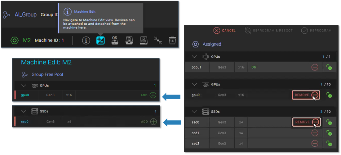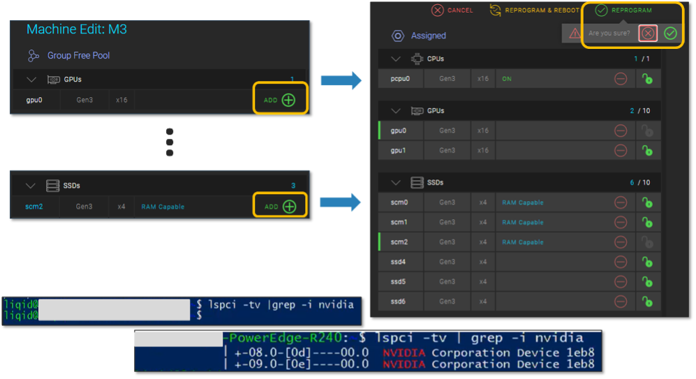 3 CPUs and RAM are not disaggregated in Liqid CDI. Servers already contain a defined amount of CPU and RAM capacity.