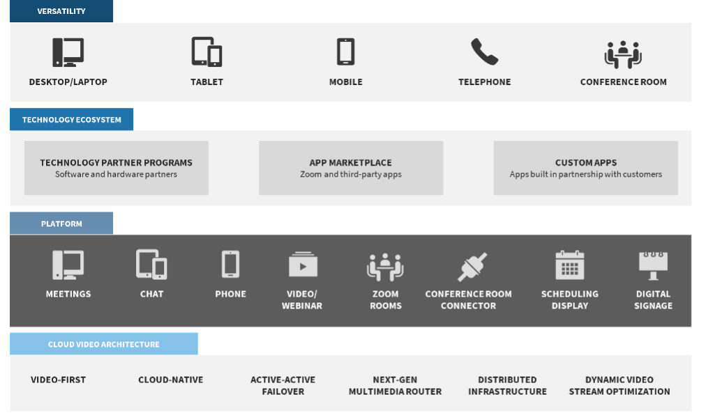 Zoom was initially founded to build a video-first communications platform for enterprises. Over time, their user base has diversified significantly to support a wide range of collaboration clients, including schools and universities; governments; and organizations of all sizes, industries, and geographies.
