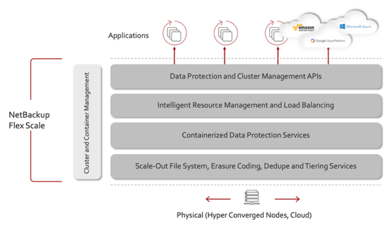 NetBackup Flex Scale is based on an API-first approach with automation of provisioning, scaling, and performance and load balancing; and ease of management as a primary design principle, one of the key requirements for success in the market. As with other NetBackup deployment modes, the software-designed scale-out architecture of NetBackup Flex Scale includes deduplication and a variety of cloud capabilities that make it a good fit for data center modernization and hybrid infrastructures.
